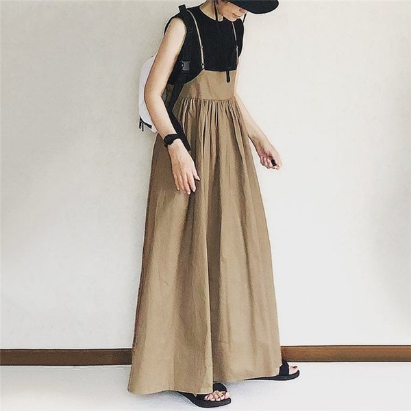 今だけ限定15 Offクーポン発行中 送料無料 サロペットワンピース リネンコットン 着痩せ ワンピース サロペット マキシワンピース レディース キャミワンピース 重ね着 ジャンパースカート ゆったり 綿麻 無地 オールインワン オーバーオール